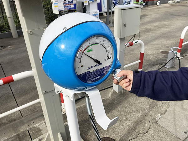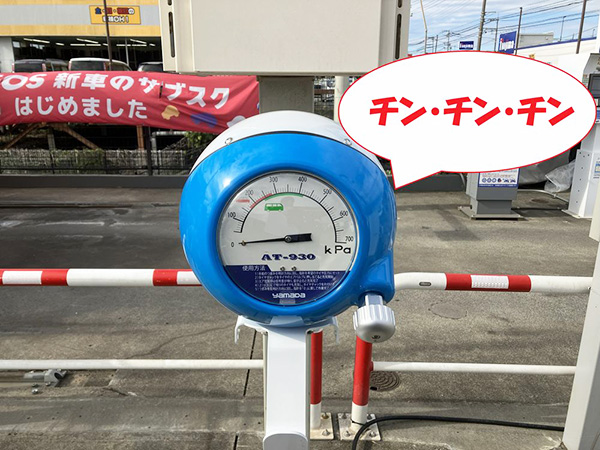 新しくなった機器でタイヤの空気圧チェックをおこない、安全・安心なドライブをお楽しみくださいね!