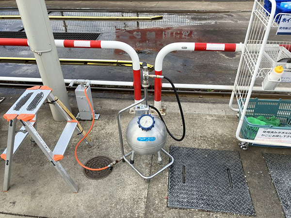 その際には、持ち運び用のエアータンク(空気圧充填機)がございますのでそちらもご利用ください。