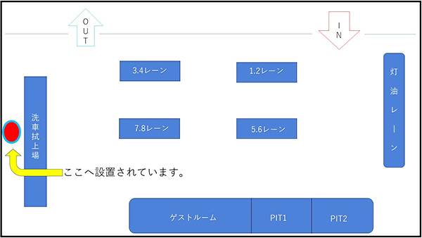 いつも「感動!グラッチェ リストランテ」をご利用されているみなさまはお分かりになる方もおられると思いますが、「洗車後に拭き上げや車内の掃除機がけをするスペース」に設置してあります。