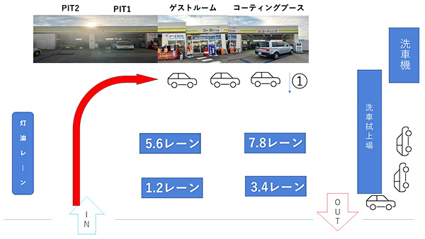 洗車の混雑時には、拭き上げをしているお客様の妨げにならないように、店舗前に並んでいただくようご協力をお願いします。