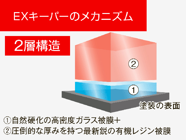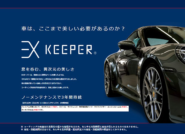 EXキーパーは、塗装の上に透明なベールをまとったような「過剰(EXCESS)」と呼ぶほどの圧倒的な艶をもったボディコーティングです。
