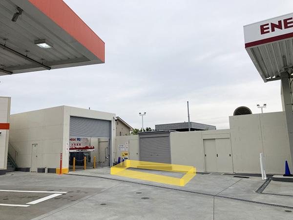 給油が終わりましたら、水素ステーションのトレーラー庫前にお車を移動していただき、停めてください。