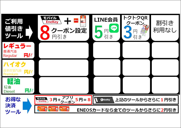 モバイルEnekeyとアプリクーポンをご利用していただいているお客様は、今までと変わらず8円引きです!!!