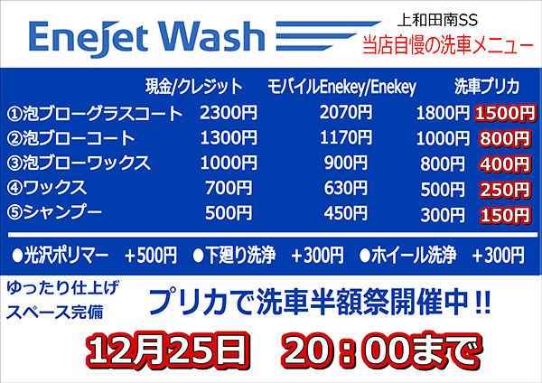 さて前回の会報誌でも書かせていただきましたが、現在今年1年の感謝の気持ちを込めて、冬フェス「プリカで洗車半額祭」が開催中となっております♪