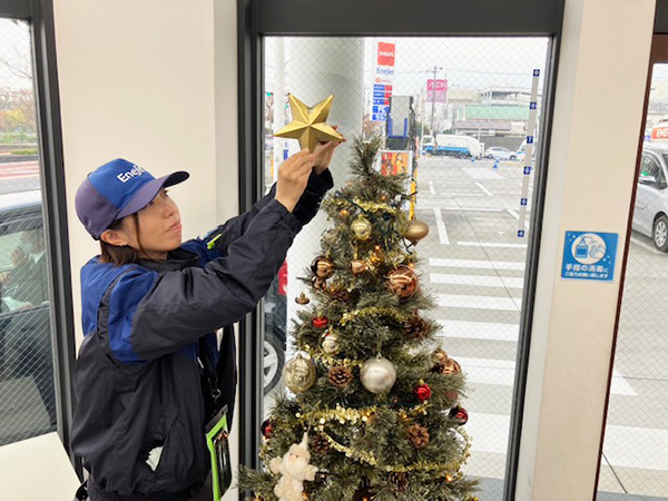 今年はメンバーの中でもとっても器用なイトウさんにクリスマスツリーの設置、飾り付けをお願いしました♪