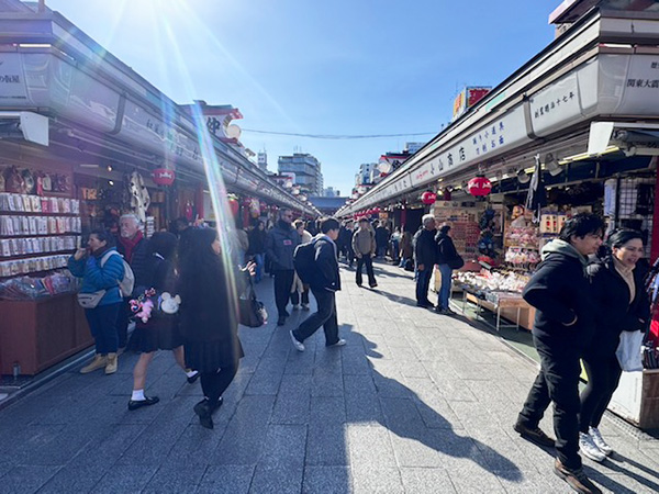 雷門をくぐると「仲見世通り」と言って約250メートルの石畳の参道に、お土産屋さんや飲食店などが軒を連ねる商店街があります。