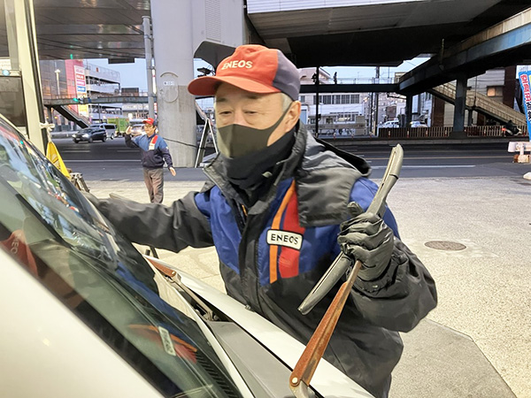 真夏の暑い日、この時期のようにとても寒い日、お客様の方が私たちを気づかって窓ふきサービスをご遠慮される方もいらっしゃいますが、私たちはお客様の安全走行、そして快適なドライブのお手伝いとしてこの窓ふきサービスを行なっておりますので、どうぞご遠慮なくこの窓ふきサービスをお受けになってください☺️🎶