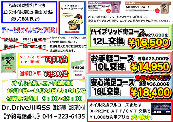 交換の目安がきている方、年末の帰省などご予定されている方、このお得な機会にENEOSの高性能オイルをお試しください!