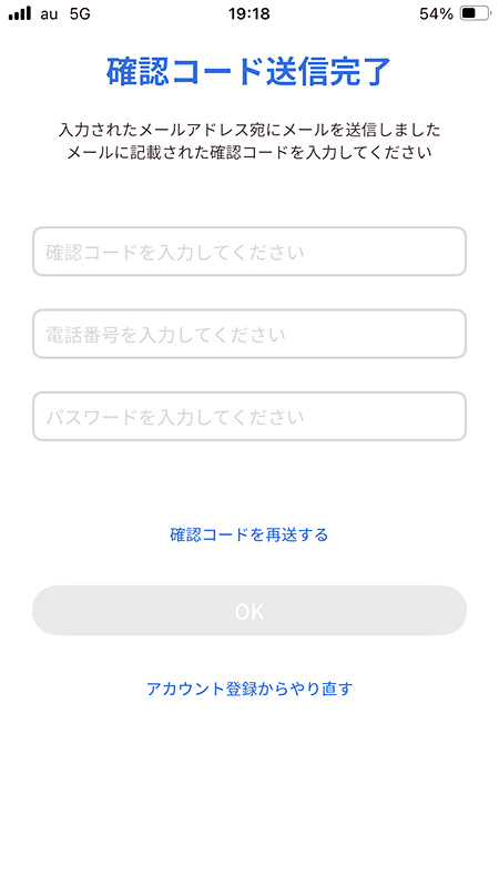 確認コード・電話番号・パスワードの入力が終わりましたら、OKボタンを押してください!