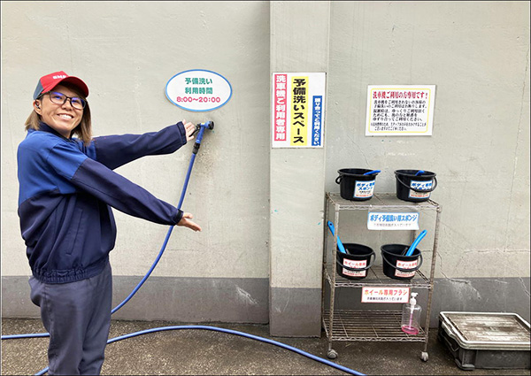 洗車機で洗えない所を事前にキレイにできる予備洗いスペースもあるので、お車のボディやホイールなどの汚れが気になるお客様はぜひご利用ください!