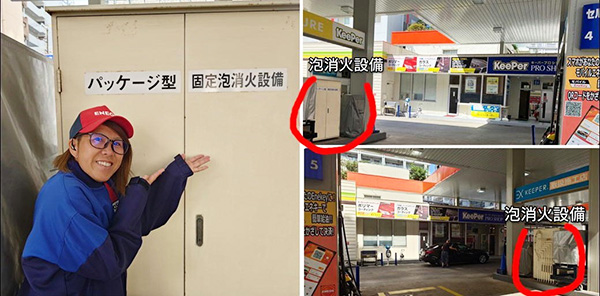 給油レーンが幾つかありますが、4・5レーンの間には泡消火器が設置されているため、「4レーンで給油されるお客様は給油口が右側に」また「5レーンで給油されるお客様は給油口が左側に」ついているお車であれば給油することができますので、お間違いのないようご注意くださいね♪♪
