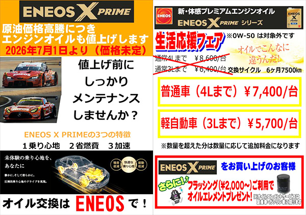 原油価格高騰につきエンジンオイルも7月1日より値上げしてしまいます😹