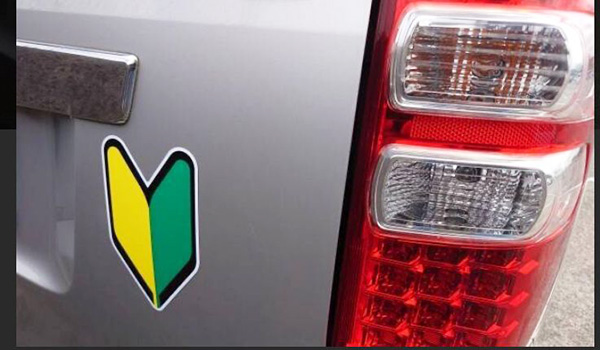免許を取って1年未満のドライバーが付ける緑色と黄色の若葉マークのことです。