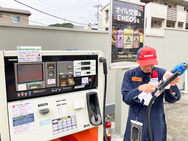 灯油の給油機の清掃と点検を行って、お客様に安心・安全にご購入いただけるように品質管理を行っております。