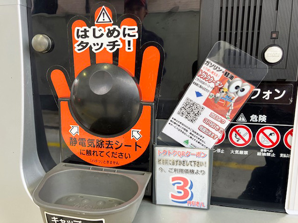 給油機に設置してある「トクトククーポン」をご利用ください。
