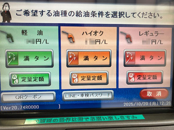 ご登録後はスマホ内のQRコードまたはパスワードを給油機タッチパネルに入力するだけで、5円引きで給油できます。
