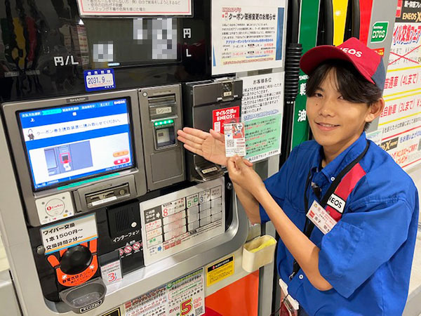 給油機に設置してある「トクトククーポン」をご利用ください。