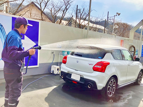 洗車の洗い残しを防ぐため、たけやまには「予備洗いスペース」を完備しております。