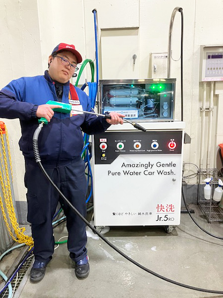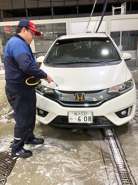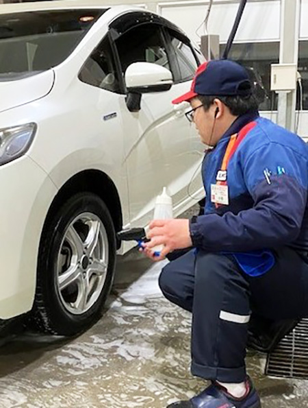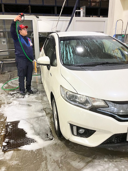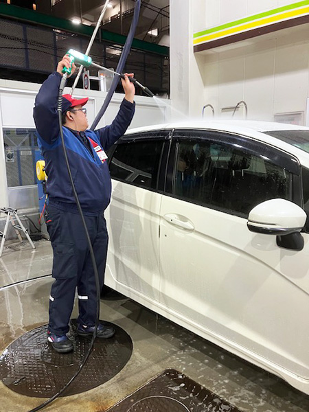 洗い終わったら、再度高圧の水でボディの隙間まで丁寧に泡が残らないよう流していきます。