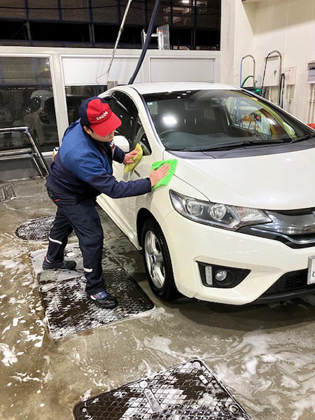 当店の手洗い洗車は高圧水でボディの表面についている砂や埃を丁寧に洗い流してから洗車を行います。