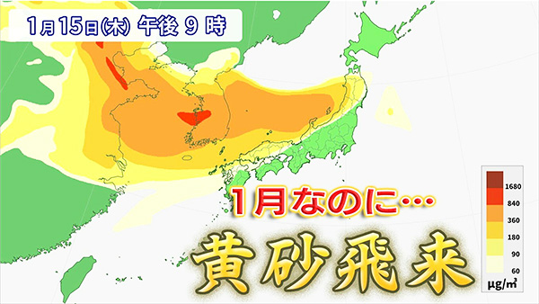 例年、スギ花粉は2月から4月にかけて飛散し、黄砂は3月から5月ごろに偏西風にのり飛来しますが、今年の1月には例年に比べてかなり早く黄砂の大量飛来がありましたね(*_*;