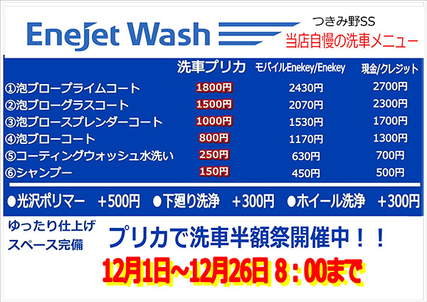 ただ今、ブルーファイヤー競技場では、冬の「プリカで洗車半額祭」を開催中です!!