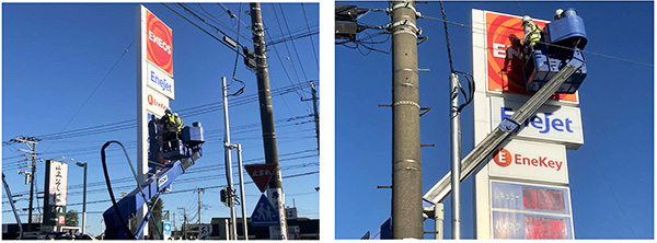 ENEOS看板に続いて、屋根の側面の「Enejet」マークや照明をキレイにしていただきました✨✨