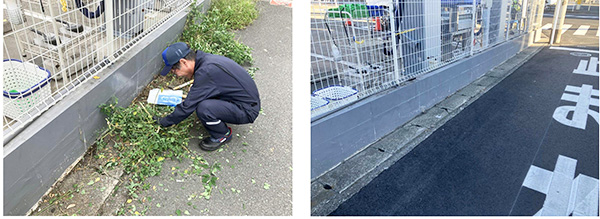 私は、外からでもキレイに見えるように、道路脇と花壇の雑草を刈りました。