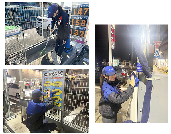 しっかり防寒対策を行い、選手たちは、お客様に気持ちよくご利用していただくために、日々のクレンリネスを心がけて活動をしています。