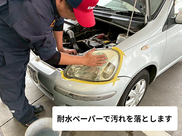 当店では黄ばんだヘッドライトをきれいにする「ヘッドライトクリーン&プロテクト」(ヘッドライトのリフォーム)を行っています。