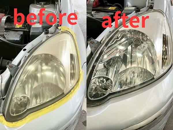 作業前と作業後を比べると、見た目だけでなく、光量も大きく改善され、明るさがしっかり戻ります。