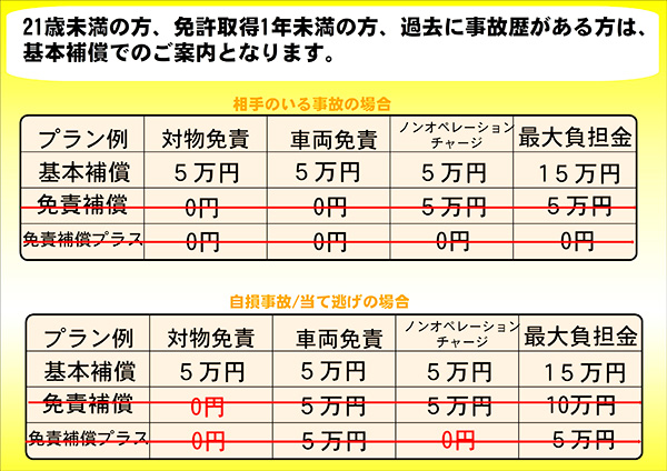 ニコニコレンタカーでは、お客様のご負担を軽減するための補償加入制度をご用意しています。