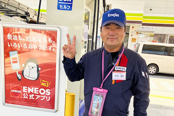 宇田さんは、ガソリンスタンド業界で25年以上の豊富な経験を持つベテランスタッフで、数多くの現場を経験してきた信頼のおける存在です。