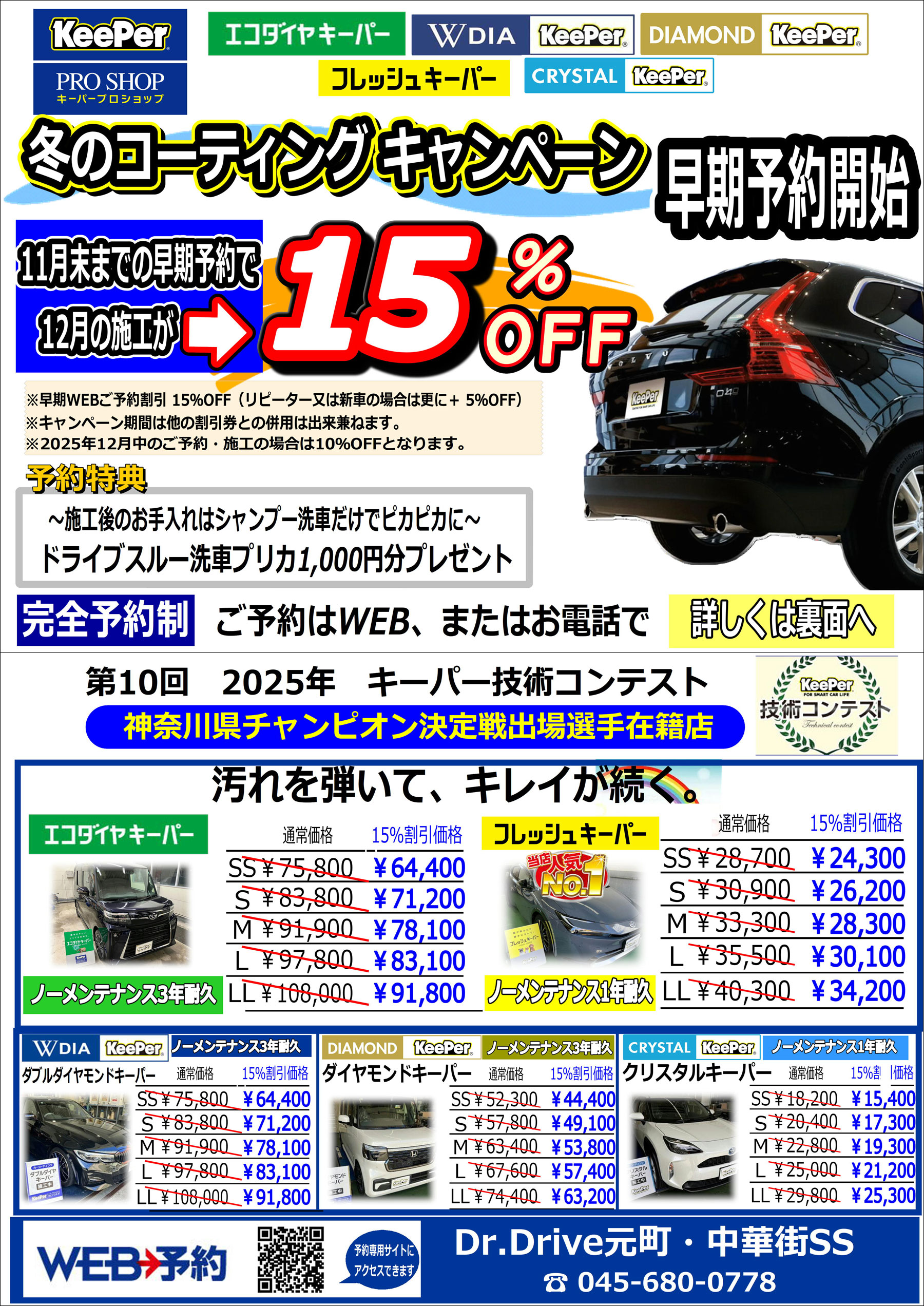 今年も残すところ1か月を切りました。 この時期はカレンダーを見る度に「また1つ歳をとっておじさんになったな」と1年を振り返っています(汗) まぁ僕の自虐ネタは置いておいて(笑) 洗車・コーティングのご依頼が最も多い月です…